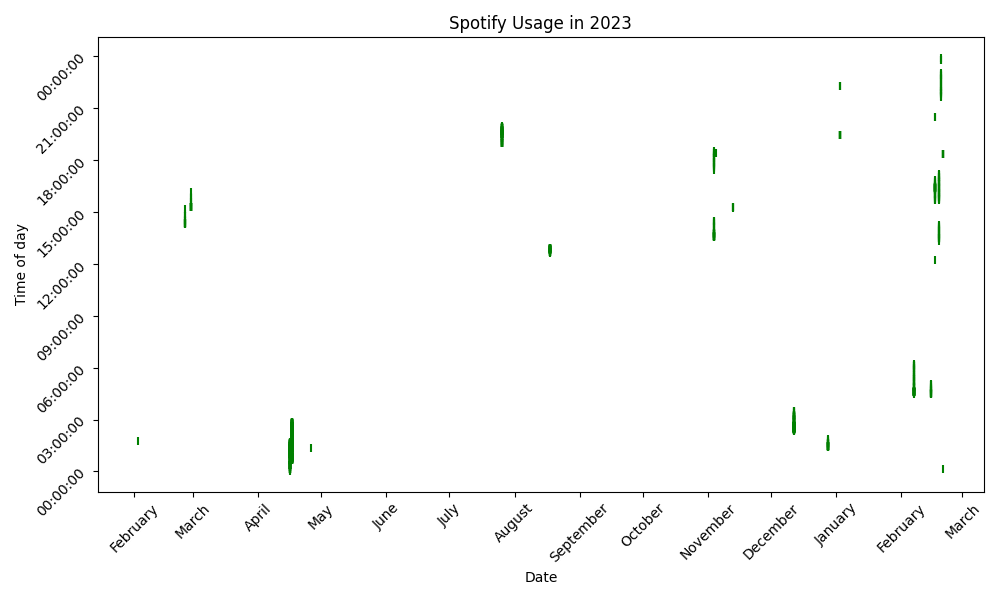Looking at the raw streaming data thanks to Spotify's data export capabilities, I can see I didn't really use Spotify in 2023, and I now use Apple Music. I haven't figured out how to generate a Apple Music User Token, yet.